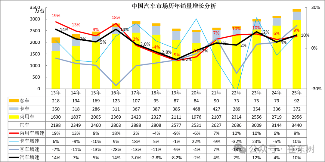 智通财经APP获悉,乘联分会秘书长崔东树于《2025年12月汽车细分市场走势和厂家竞争表现分析》中提到,2025年宏观经济保持较强增长,在国家促销费政策推动下汽车市场保持强势增长,2025年全国汽车市场总体走势较强,卡车市场和客车市场回暖明显。由于去年政策力度超强,今年政策收缩明显,2024年12月的零售大幅强于批发,导致今年12月乘用车零售负增长,但因出口和库存增量,12月厂家销量增速相对较好。12月新能源车走势较强,汽车出口市场持续走强,厂商库存变化较大,行业压力仍较大。2025年商用车市场出现设备更新补贴推动的结构性增长特征,高补贴带来物流运输类电动化加速,商用车景气度较高。